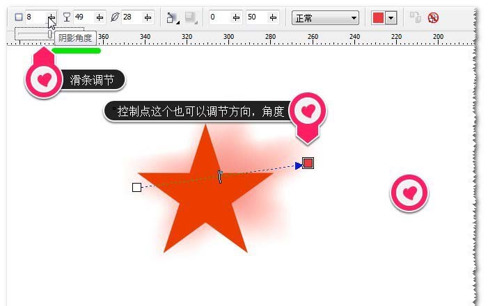 1、阴影角度。其实改变基准点即可以(不让基准点在中心),调节阴影角度