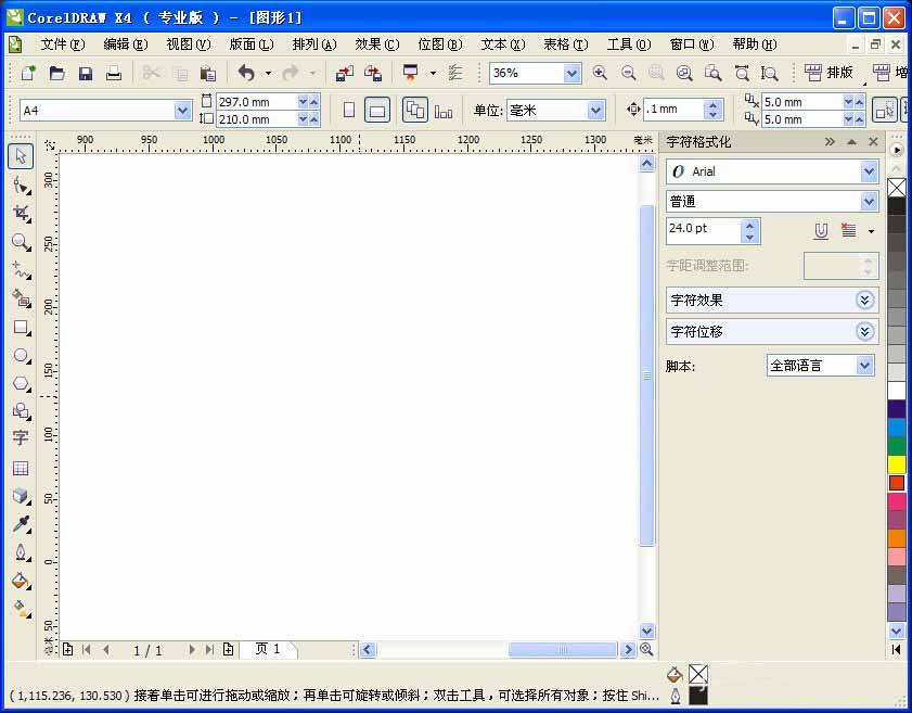 选择“字符格式化(快捷键Ctrl+T)”弹出字符格式化设置框,