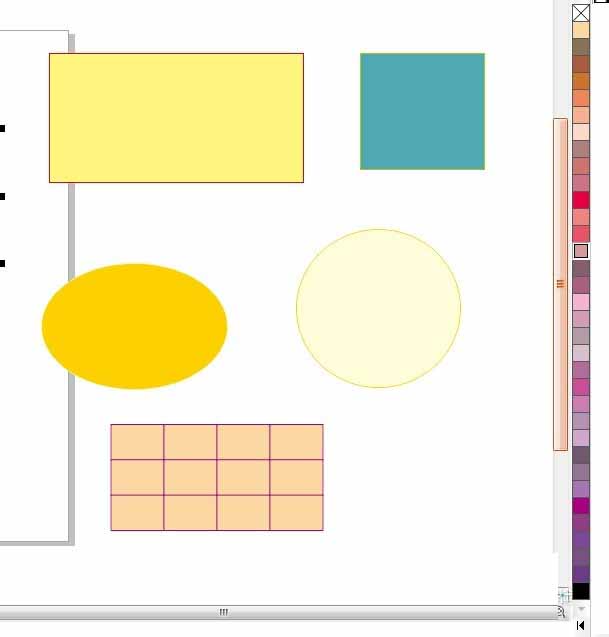 4、点击右侧调色板,选择图形,右键点击填充轮廓边缘,左键点击填充图形内部颜色,如图: