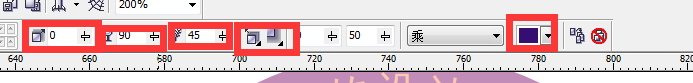 5、点击文字工具,写出文字后点击交互式阴影工具,如图所示,将阴影角度选为0度,阴影的不透明度和羽化度数分别改为90和45,将阴影羽化方向改为向外,羽化边缘改为方形的