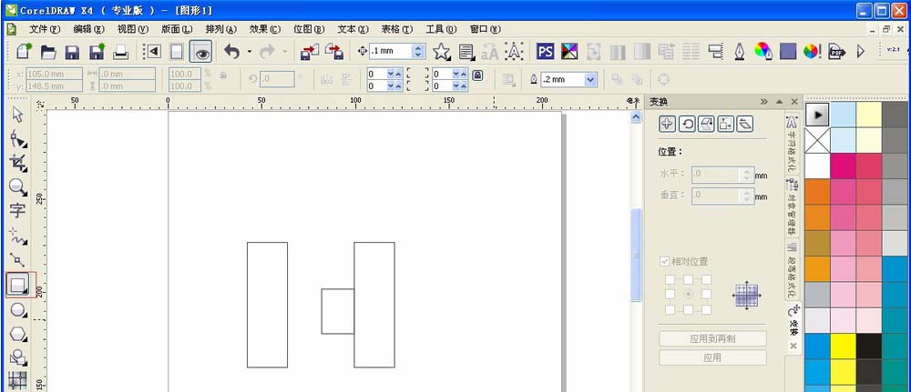 1、首先我在软件里面画一个最简单的字母H图形,这种画图很简单,也有很多方法,我这里使用矩形工具画出基本图形,效果如下图所示。