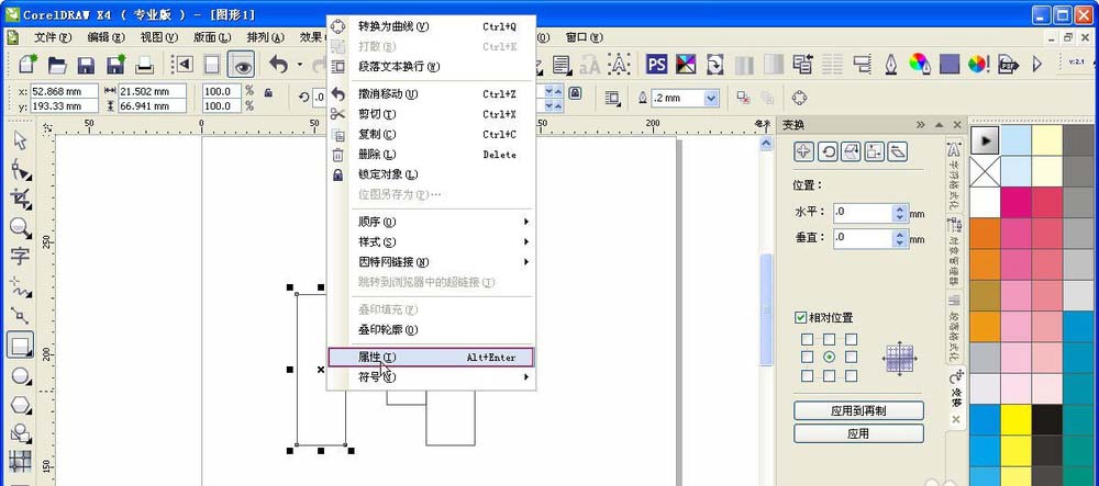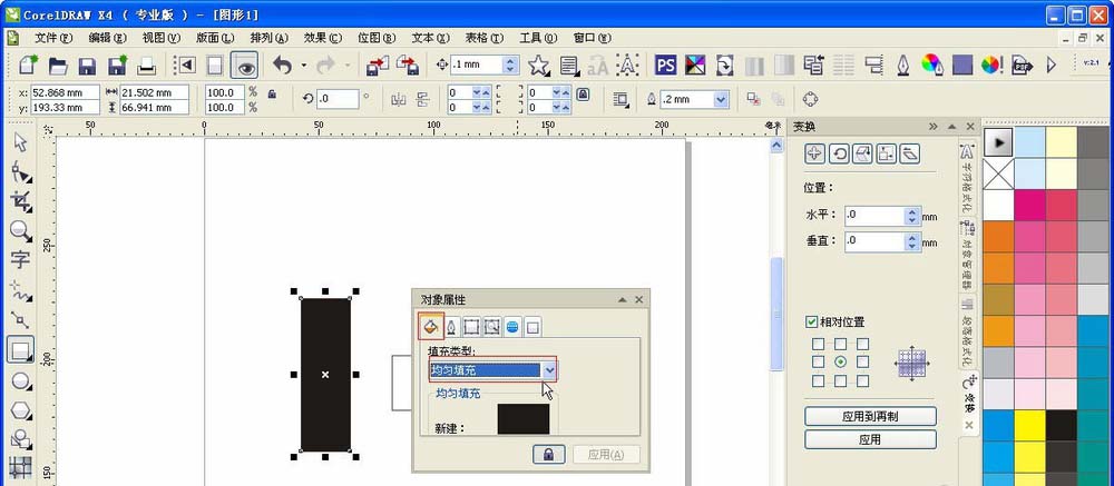 2、画好了以后,就是它填充一下颜色,因为在后期还需要重新填色,所以在这里我们随便填充一个什么颜色无所谓。我这里填充为黑色,填充的方法很简单,在选中的区域点右键——属性,然后选择均匀填充即可,默认就是黑色的。其他区域按此方法依次填充.