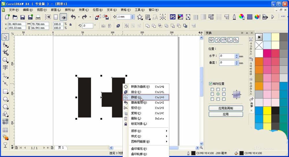 3、为了后面方面操作,我这里进行组合一下,其实如果真正的设计这里是可以组合的,因为一旦组合了后面填充颜色的话就都是统一的颜色了。不方便颜色选择。