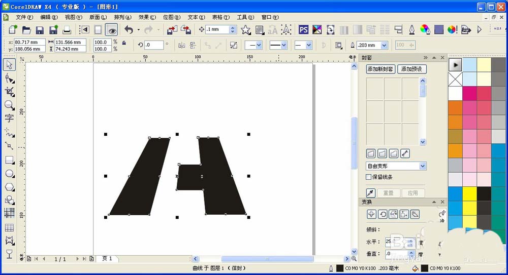 4、接下来我们使用互动式封套工具将字母变形 (如图),但是封套工具从哪里放出来呢?我这里使用的是CorelDRAW x4版本的软件,所以互动式套装工具点:效果——封套,