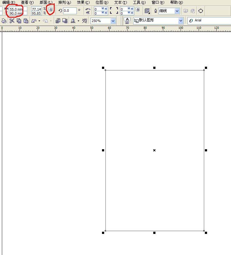 3、这个长方形的大小是可以修改的,怎么修改呢?根据图中所圈的地方改成你想要的尺寸。