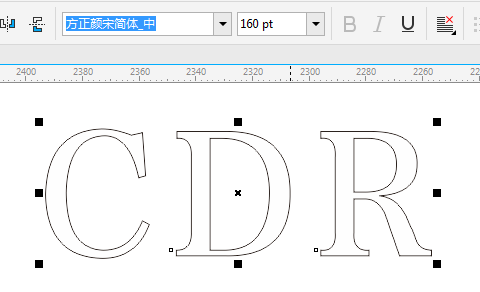 2. 使用“文本工具”F8,输入想要文字、字母。鼠标左键单击色板选择无填充,鼠标右键单击色板应用黑色轮廓,如图所示。
