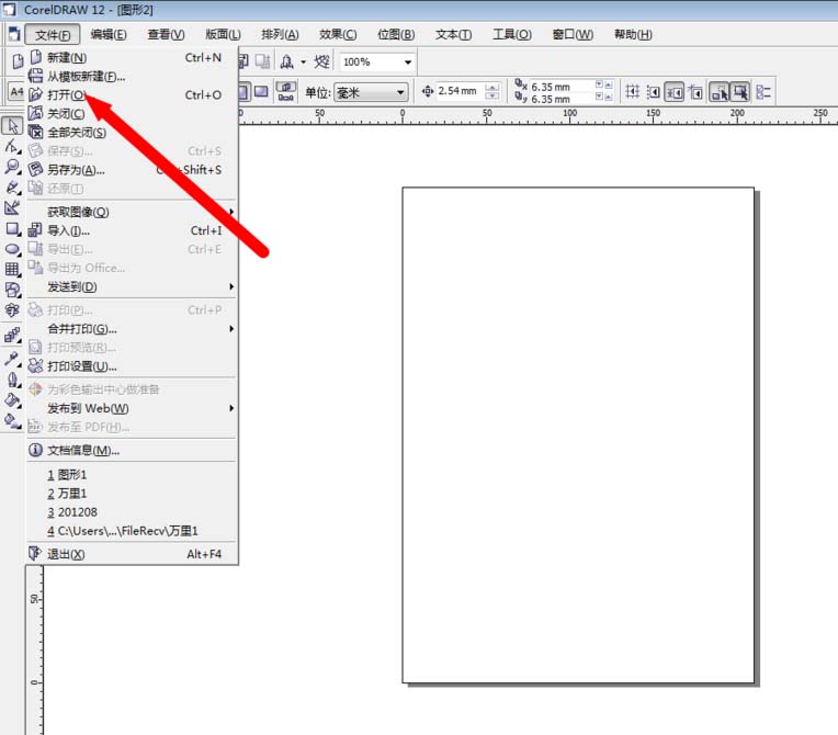 1、文件打开:打开coreldraw 之后,在文件,打开,然后找到对应的源文件。