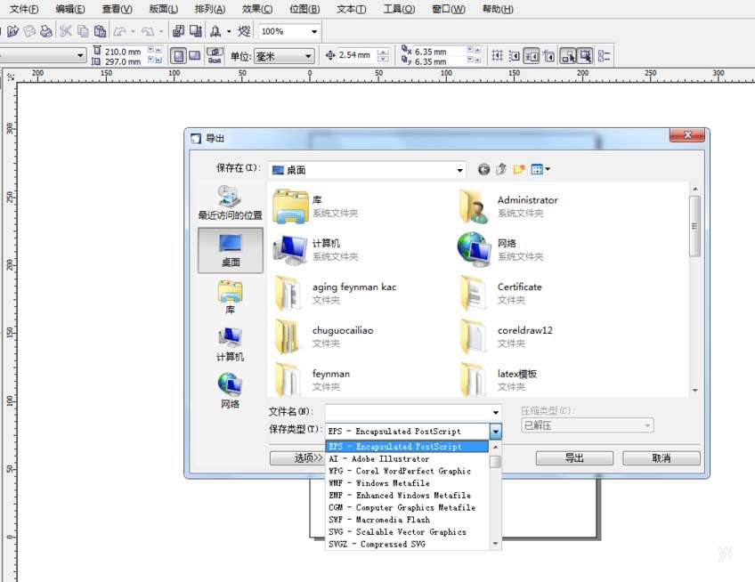 3、选择格式:在导出的文件格式中,选择eps格式。当然这里有很多格式让你选择。