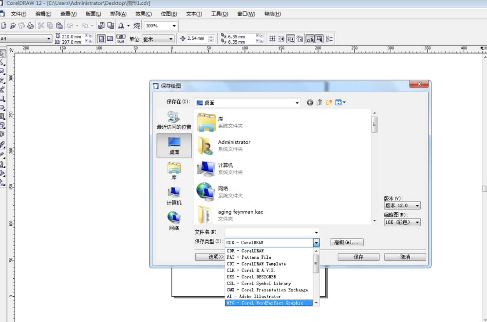 5、其他格式:通过文件--》另存为可以保存成CDR,PAT,DES等格式。