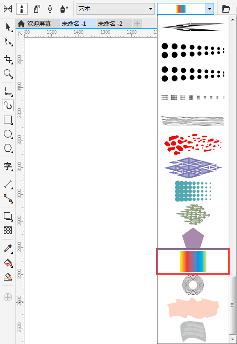 2. 在选中圆形的状态下,使用工具箱中“艺术笔工具”为其添加艺术效果。在其属性栏中单击“笔刷”