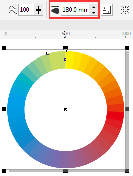 4. 修改属性栏中“笔触宽度”,可调整笔触宽度,这样一个简单的色相环在CDR中就完成了。