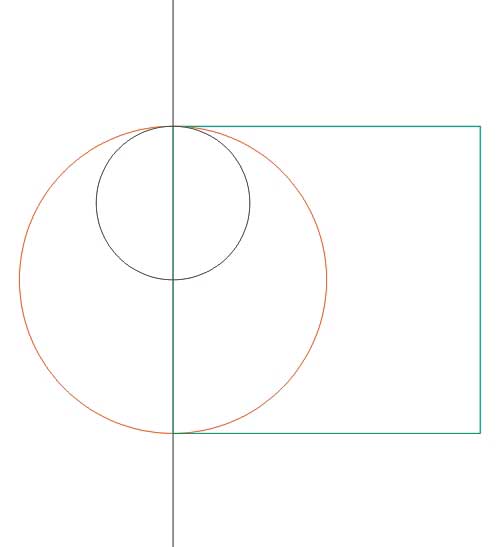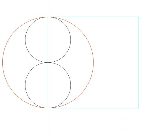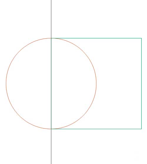 然后在画一条竖线,超过100mm就可以了,竖线与圆同时选中时按下C键在按E键居中;