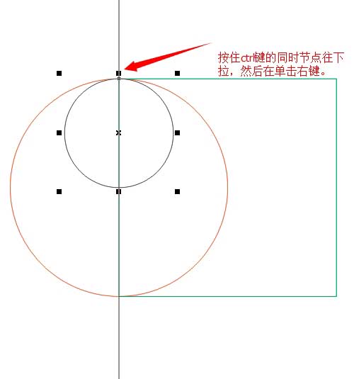 3、然后选中这个小正圆,按住ctrl的同时该节点往下拉在单击右键。