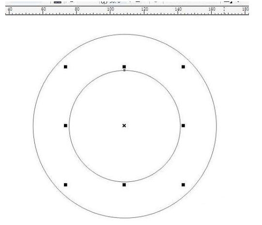4、接下来就是交互式调和,现在一共是两层交互式调和,所以中间那个圆要再复制一个,为了方便直接用快捷键:小键盘的 + ,这样能保证它在同一个图层。注意,要先从底层的开始做交互式调和。
