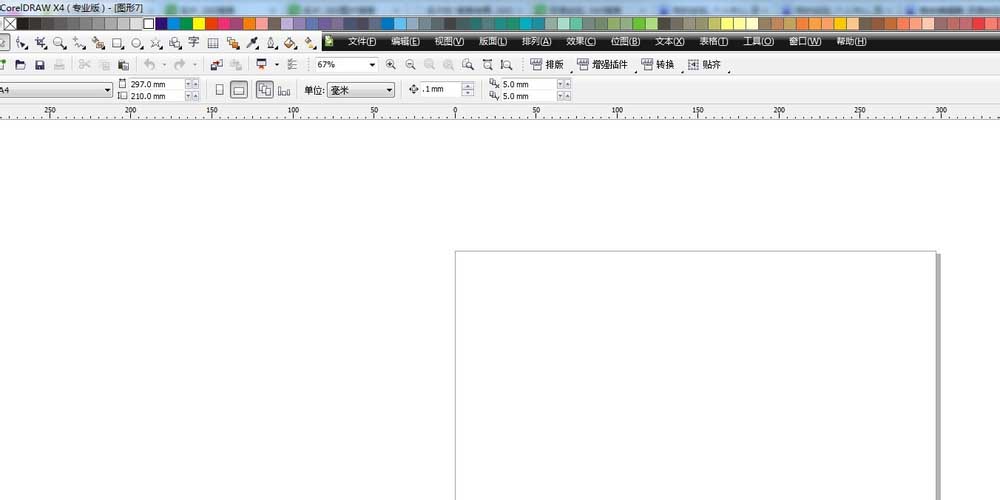 1、首先,点击我们桌面上已下载好的coreldrawx4,点击打开,在coreldrawx4中,我们点击文件下拉选着新建文件,,新建一个文档,横向,单位毫米。如图所示。