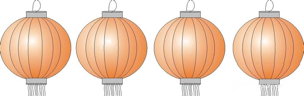 5、然后用钢笔工具绘制上下面的线条,按住键盘上的c+e键,进行上下左右对齐,然后按住键盘上的ctrl+g键,把这个天灯群组起来,一个灯笼做好了,往右复制三个灯笼。如图所示。