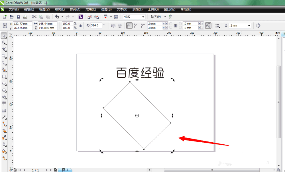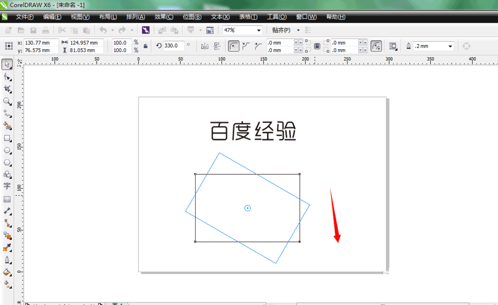 7、待我们松手以后,就可以看到矩形被旋转倾斜了
