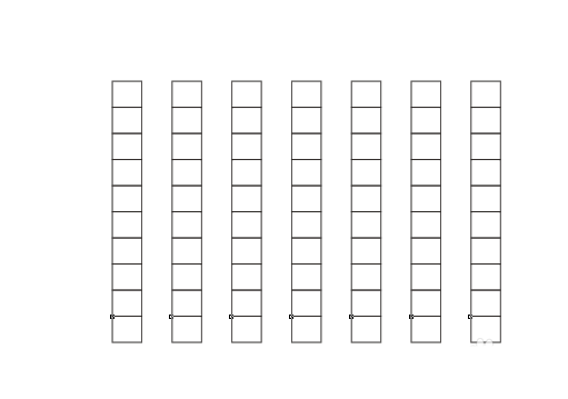 5、将阵列的一排矩形全部锁定,摁ctrl+G,重新选择相对位置,调节其距离,阵列出下一排,如图所示