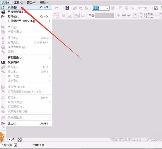 1、打开CDR软件之后会出现这样的一个界面,现在我们需要新建一个页面,文件--->新建,出现页面之后我们可以选择纸张大小。里面有A3,A4等等纸张大小根据你自己的需求找合适的纸张。(小编在这里选择的是A3纸张的大小)