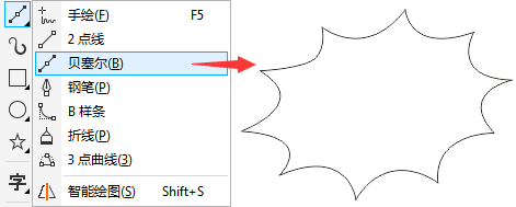 1. 用贝塞尔工具绘制一个爆炸造型。(用贝塞尔工具绘制的时候双击节点可以断开手柄。)画完之后可以用F10形状工具进行调整,如图。