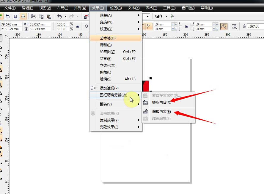 7、如果我们想要把合成的文件分开,还是执行效果-图框精确裁剪-提取内容即可,连个图片即可分开。