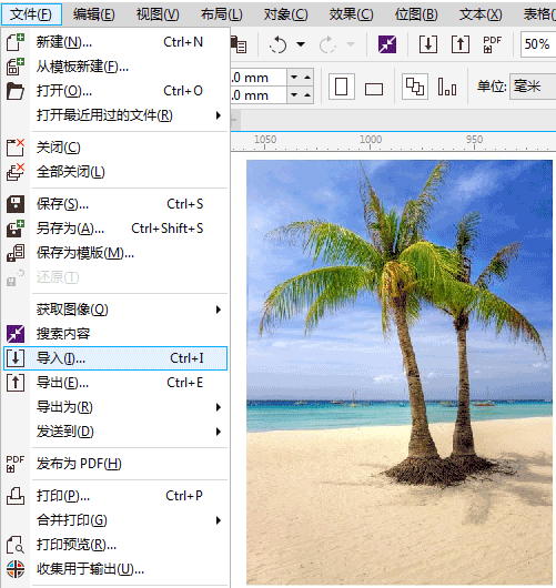1. 双击运行CorelDRAW X8,新建文档。执行“文件>导入”命令,组合快捷键是(Ctrl+I),打开平日拍摄的照片。
