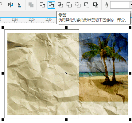 4. 修剪掉多余的皱褶部分,绘制矩形,然后按住Shift键加选皱褶图片,执行菜单栏中的“修剪”命令,将皱褶图片的多余部分修剪掉。