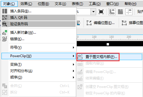 ② 或者选中位图后,执行菜单栏中“对象>PowerClip>置于图文框内部”命令。