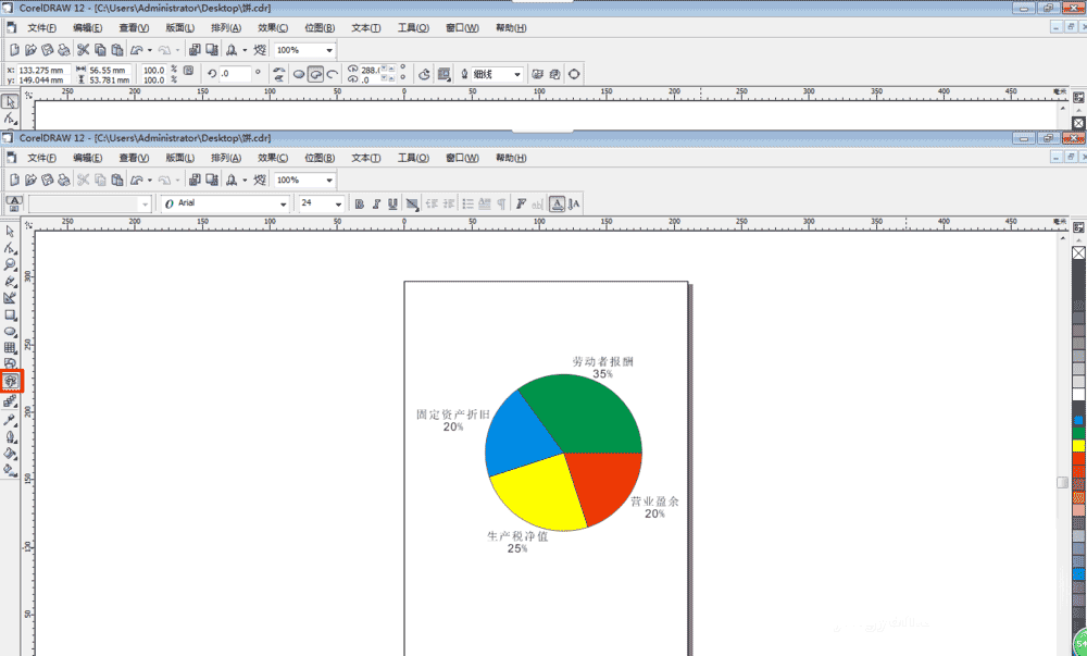 通过coreldraw椭圆工具绘制饼图,效果图如下图所示: