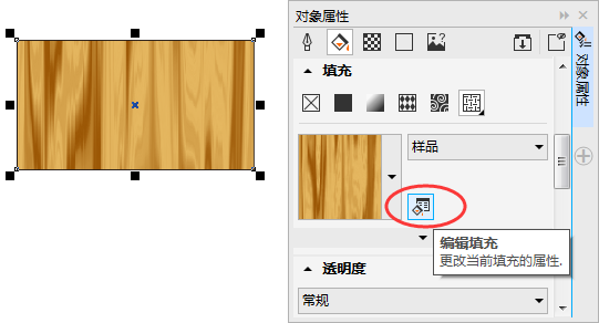总之,类似这中木纹效果的纹理就好了,关于调色可以根据自己爱好;关于纹理填充,你可以通过“对象属性”泊坞窗进行查看,单击“编辑填充”按钮即可。