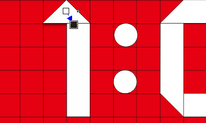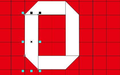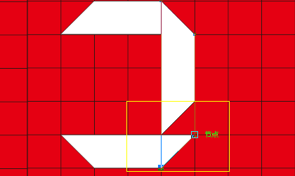 7. 以右边梯形为基本图形,继续水平镜像复制一份,平移两个单元格,用“形状工具”选中右侧顶端节点,向下拖动一个单元格,如图所示。。