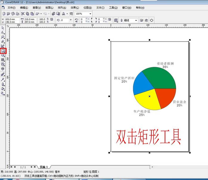 1、在导出图像之前,先确保你绘制的图形在页面中,然后双击矩形工具,得到一个与页面大小一样的矩形