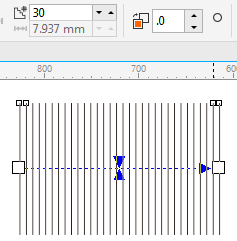 步骤2:在工具箱中选定“调和工具”,在调和的起始对象上按住鼠标左键不放,然后拖动到终止对象上,释放鼠标。在属性栏中调节罗纹线的疏密,值越大越密集,如图。