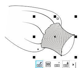 步骤5:选择应用过封套效果的形状,点击菜单栏“对象>PowerClip>置于图文框内部”,出现一个黑色箭头,用箭头点击罗纹袖口造型,得到效果如图所示。