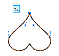 2. 使用“形状工具”点击心形顶角处,出现手柄,分别向内拖动,如图所示。