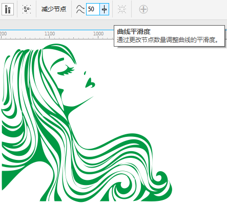 或者移动曲线平滑度滑块,控制要移除的节点数。移除许多节点会重新对曲线对象造形(平滑值一般在25~40就可以了)因为值太大曲线就会变形失真了。