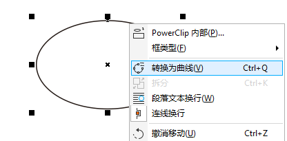 2. 点击属性栏中“转换为曲线”按钮,或在图形上鼠标右击,在弹出的快捷选项中选择“转换为曲线”命令,快捷键Ctrl+Q。