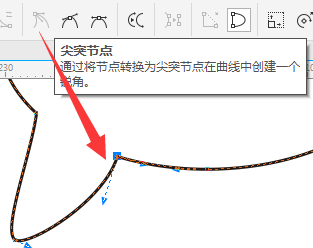 4. 添加节点完毕以后,继续使用“形状工具”为曲线造型。结合属性栏中尖突节点调整手柄。