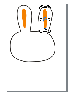 8、在CorelDRAW X3左侧工具箱中单击“挑选工具”按钮 ,选中做好的大白兔耳朵,将其移动到头部轮廓的合适位置,按住小键盘上的“+”号,在同样的位置复制一个一样的通行,将其移动到头部轮廓的另一侧,旋转右侧耳朵道合适位置。如图所示。