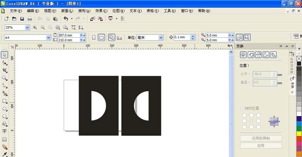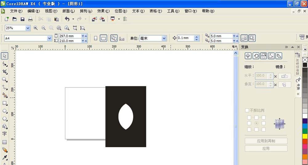 3、为矩形填充黑色,然后框选两个图形,选择变换,比例大小,然后选择应用到再复制,如图