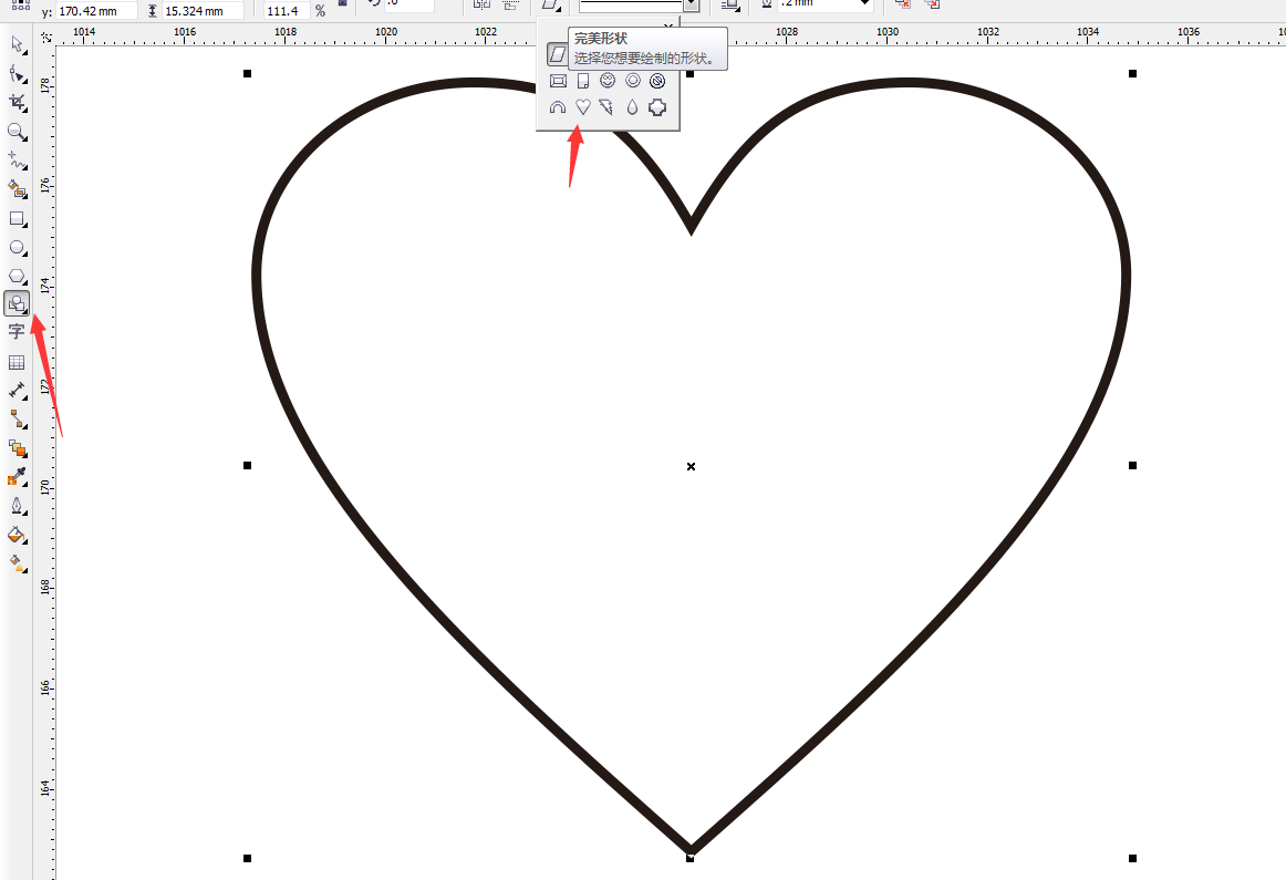 2、开始绘制三叶草,选择左边工具栏里的基本形状,找到心形绘制一个心形,转曲用形状工具把他调得圆滑点,效果如图