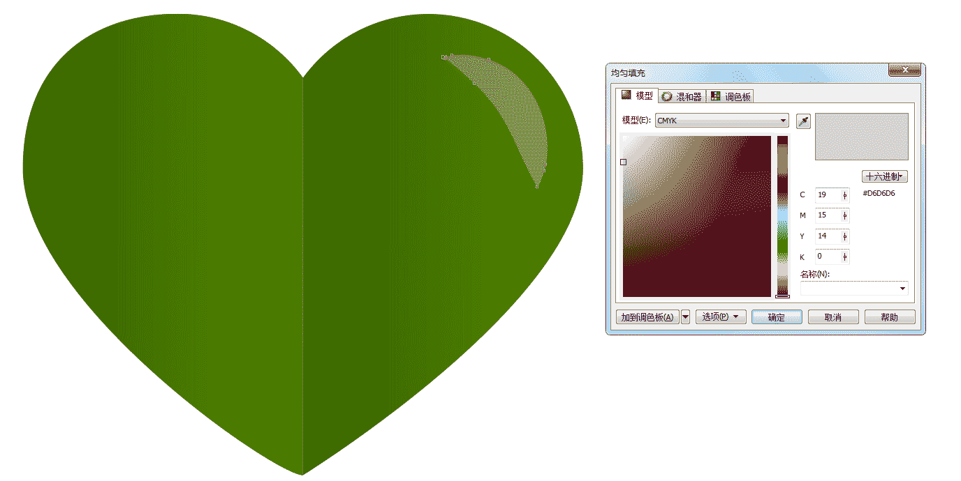 注意水平镜像之后会出现这样的情况,我们要用形状工具把它调下,再填充颜色,如图
