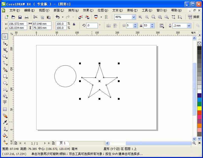 6、线条焊接。分别选择“椭圆形工具”和“星形工具”,在工作区域画出图形。如图,