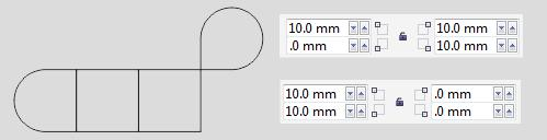 选中图形,设置再制偏移,垂直-0mm,确定后按组合键Ctrl+D再制一个此图形,在属性栏上点击水平镜像和垂直镜像按钮,填充一个不一样的便于识别的颜色,效果如下: