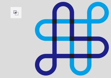框选所有图形,选择属性栏上“创建边界”按钮,设置轮廓宽度为5mm,选择“对象”>“将轮廓转换为对象”(为了便于看清下面的步骤,给对象换个颜色),然后将原来的图形删除,效果如下。