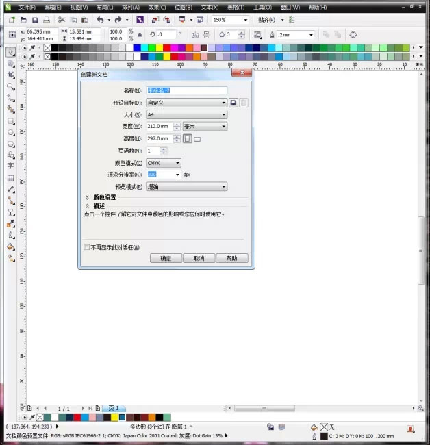 我们每个炫丽多彩的效果图都是从新建文档开始的。就好比每个帅哥出门之前都是要先从打扮开始的一样。那么我们按住键盘CTRL+N键选择新建文档。其他设置我们默认即可,如上图;