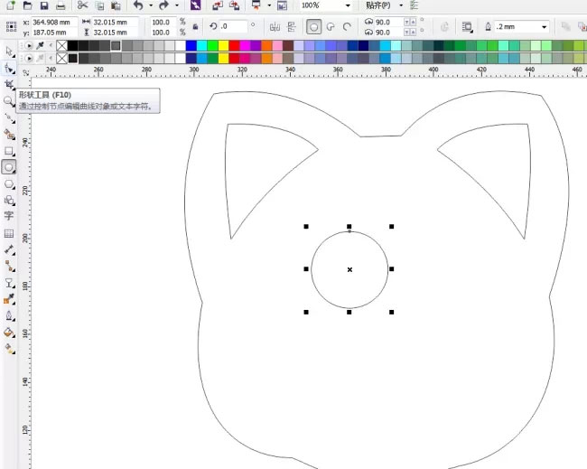然后我们在绘制阿狸的肚子,用椭圆工具绘制就可以了,如下图:然后我们在绘制阿狸的腿,用椭圆工具绘制,并且吧椭圆按CTRL+q转曲,然后把所有节点选中在属性栏上分找到