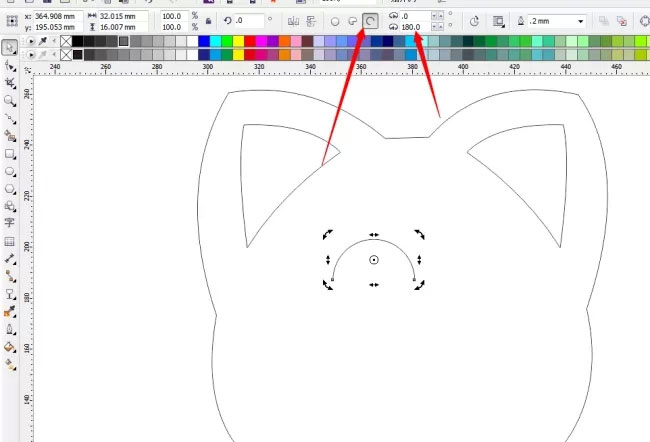 绘制好圆后,我们在属性栏上方,给他选择弧并且调整一下参数。如下图: