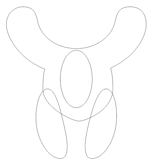 接着上面我们绘制到的头部,我们来用贝塞尔工具绘制阿狸的身子。如上图: