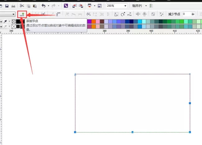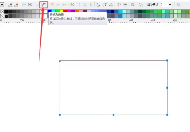 然后我们再用矩形工具绘制一个矩形,并转为曲线,然后用形状工具把所有节点选中,然后在属性栏上方选中转为曲线